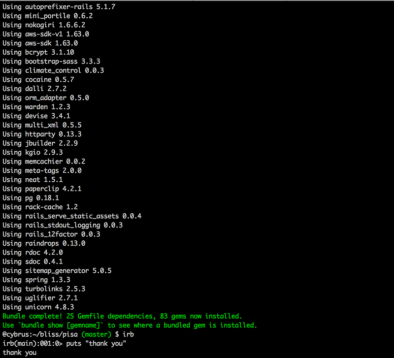 This is a list of all the open source “gems” that other people (not me) wrote so that I (me) could get my work done faster.